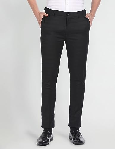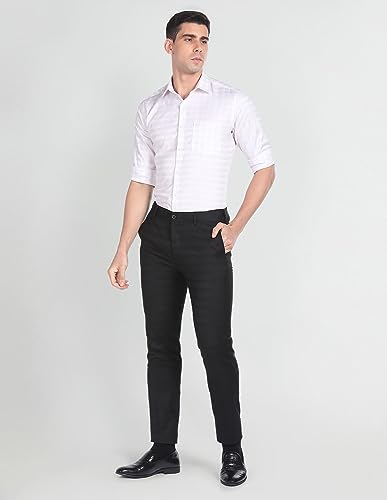 Raymond Men's Polyviscose Blend Checks Pattern Slim Fit Flat Front Formal Trouser