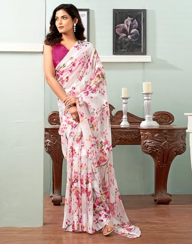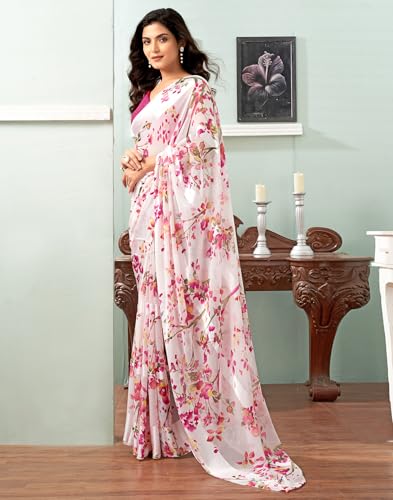 SIRIL Women's Organza Jacquard Woven Zari Stripe Saree With Unstitched Blouse Piece