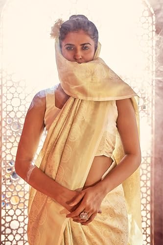 Sidhidata Women's Printed Linen Cotton Saree With Unstitched Blouse Piece (ST ChuiMui White_White_Free Size)