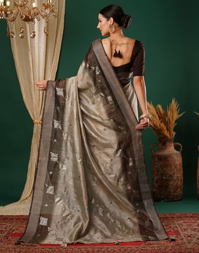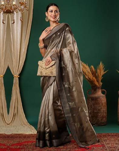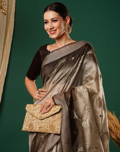 SIRIL Women's Art Silk Digital Printed Jacquard Ready To Wear Saree With Unstitched Blouse Piece