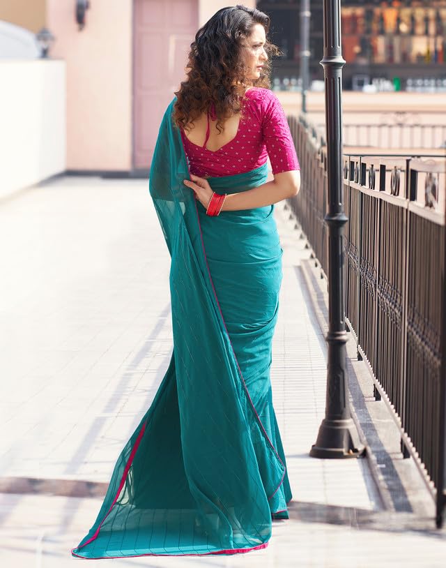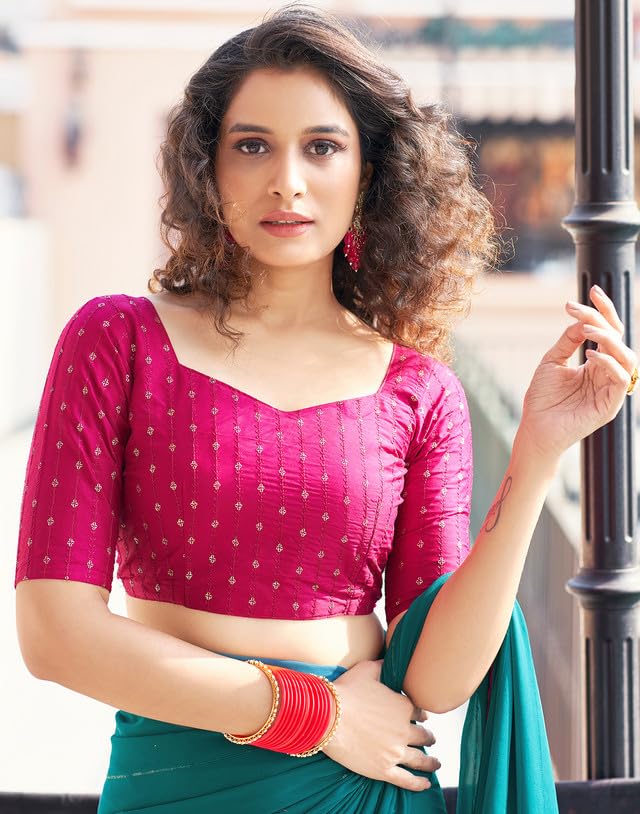 SIRIL Satin Silk Hot Fixing Stone Work Saree for Women With Unstitched Blouse Piece
