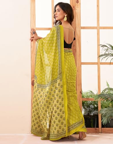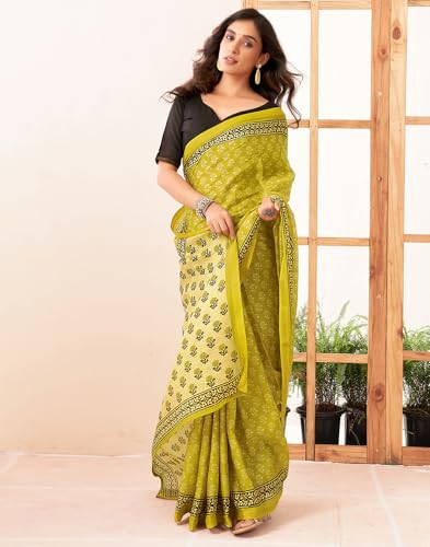 SIRIL Women's Bandhani Printed Chiffon Saree with Blouse
