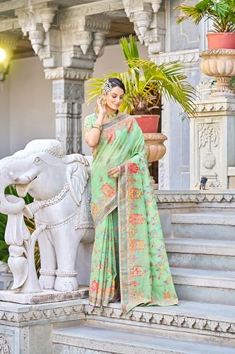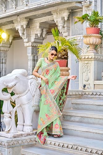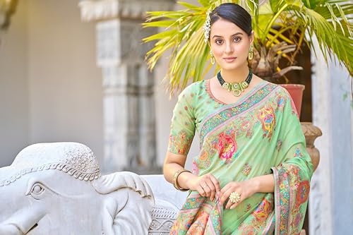 SIRIL Women's Georgette Printed Hot Fixing Saree With Unstitched Blouse Piece