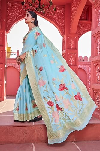Sidhidata Women's Printed Pure Georgette Saree With Unstitched Blouse Piece (Alia Paddiing_Multicolour_Free Size)