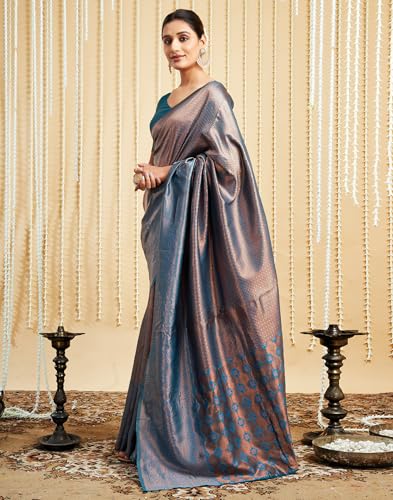 SIRIL Women's Pure Cotton Bandhani Printed Zari Stripe Border Saree With Unstitched Blouse Piece