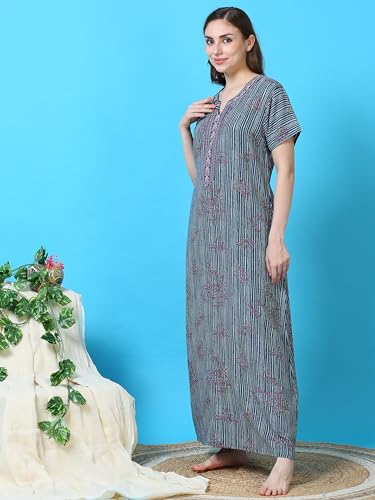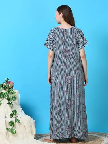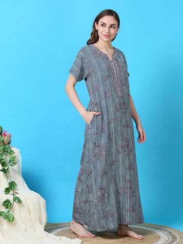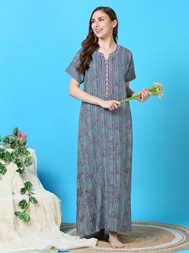 CLOUD SOFT CS4002 Premium Spun Designer Embroidered Nighty for Women |Aline, Full Lenghth Maxi/Nighty Nightgown |Everyday Regular Wear | Pocket on The Two Side