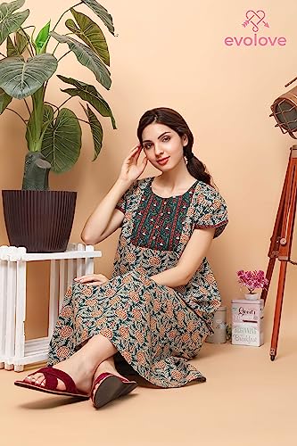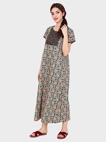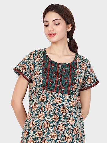 CLOUD SOFT CS1001 Rayon Cotton Designer Nighty for Women | All Over Print with Pocket on The Right Side