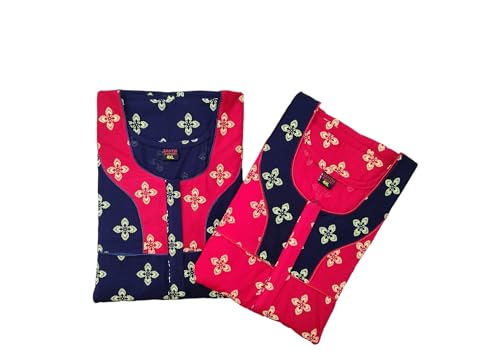 Buy That Trendz Printed Cotton Short Night Dress for Women 2 Pcs Combo Love Black Be Kind Navy