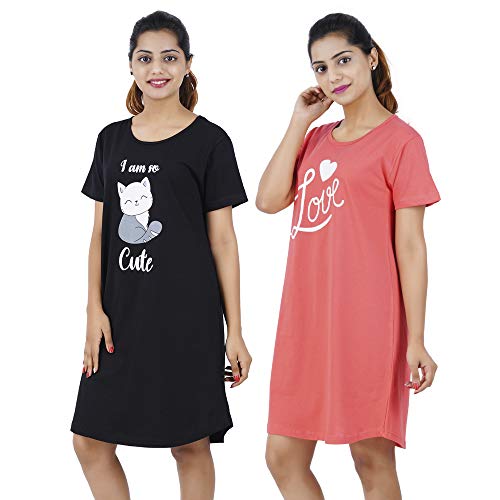 Buy That Trendz Printed Cotton Short Night Dress for Women 2 Pcs Combo Love Tomato Red I Hate Mornings Rani Pink