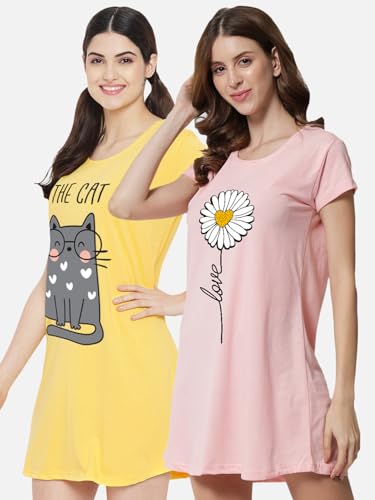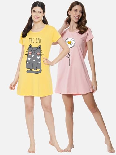 ZEYO Women's Rayon Floral Embroidery Nighty Night Gown 5681
