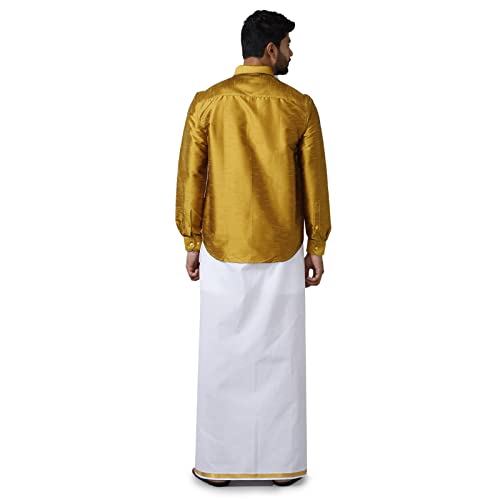 RAMRAJ trending half sleeve shirt with matching fancy border dhoti for men