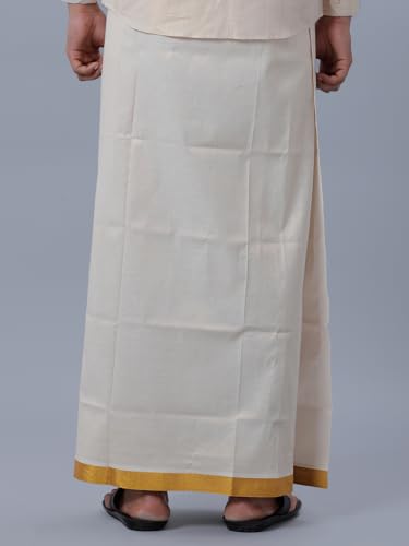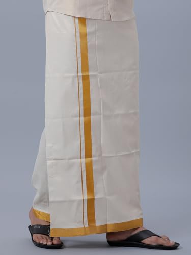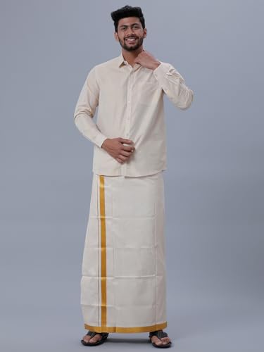 RAMRAJ COTTON full sleeve shirt with gold jari 3/4 inch border dhoti for men