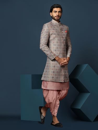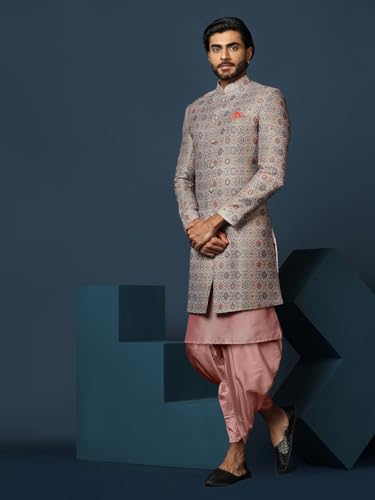 KISAH Men's Indo-Western Sherwani Trouser Set, Purple Cotton, Jacquard Regular Fit Mandarin Collar Long Sleeves
