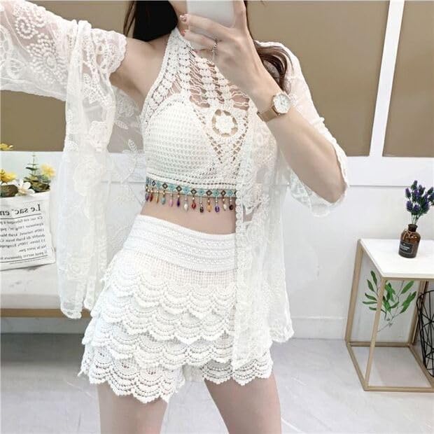 ZeroKaata Ribbed Bikini Set for Women with Sarong Skirt for Women Beach Wear | 3 Piece Beach Dress for Women | Swimsuit Set for Women