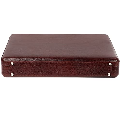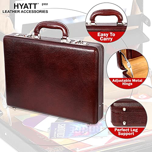 Hifly Leather Briefcase for Men - Expandable - Unisex - Pondi Two Tone Leather - Hard Briefcase - Office Bag - Leather Accessories - 3 Digit Combo Lock - Suitcase - Laptop Briefcase - Luggage - Tan